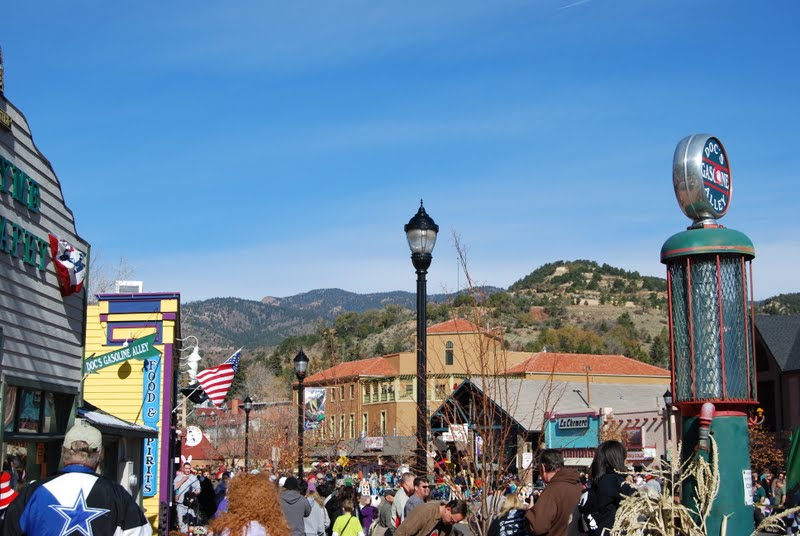 The first day we got there Andy had to do his job site stuff, so I stayed at the hotel and chilled. So nice to sit and do nothing!! That NEVER happens at home, which is why this blog never gets updated. That night we had dinner with a guy Andy had been working with out there and his wife. They gave us some great tips for our trip. The next day we headed out to a town that was having a coffin race, it was Halloween weekend and that brings out the crazy people. We should have figured that a Halloween festival would be a little different for us, but we thought it was a family type of event. Well there were lots of families there and it was definitely interesting. For living in the tobacco capital of the world, I don't think I have ever seen so many people smoke as I did when we were in CO! I thought I was going to die at this coffin race thing, so we went and ate lunch in a non smoking restaurant. Then we headed up to ride the Pike's Peak Cog Train. We didn't stick around for the coffin race, figured it wasn't really our thing and I didn't want to have an asthma attack.
